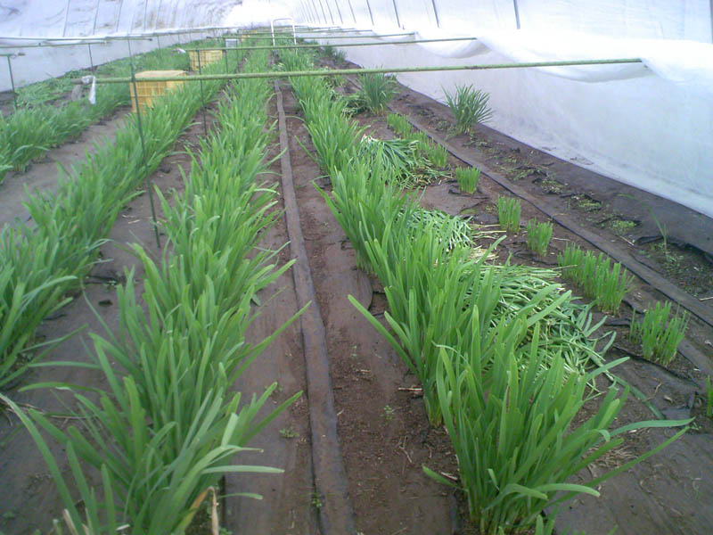 さて、左の写真はまだ出荷できるニラです。このニラはまだ成長が途中なので、少したてば出荷できるやつです。