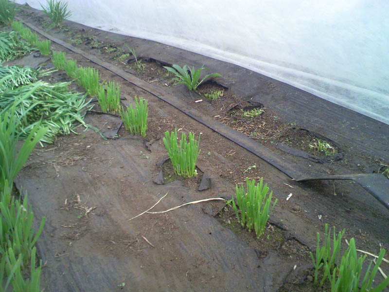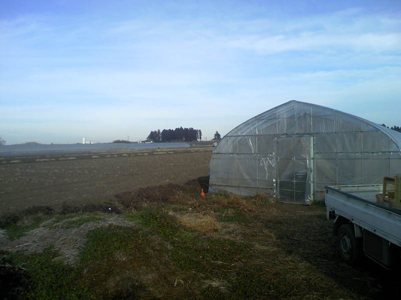 まぁ、その前に、上の写真ですが、なぜ白いしーとがかかっているかというと、ニラが寒さでだめにならないように毛布をかぶせているのです。