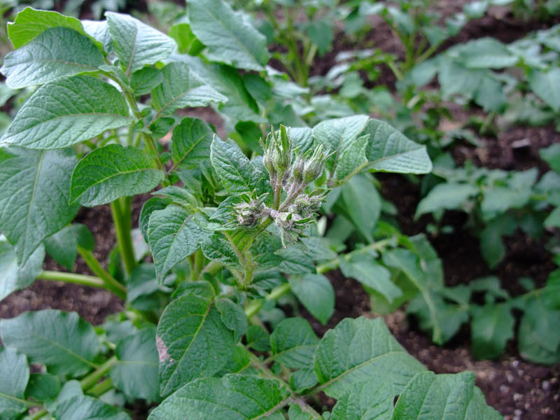 さてさて、一番初めに植えたメークインの花の蕾が確認できました。