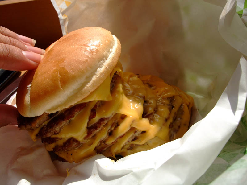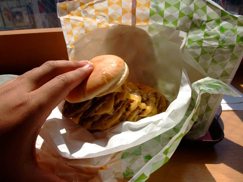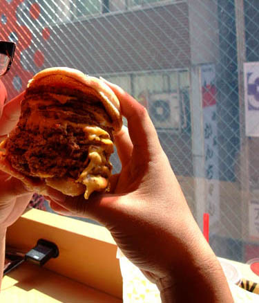 ま、まぁロッテリアのチーズバーガーのビーフパティとチーズを交互に積んだバーガー的な味でした。