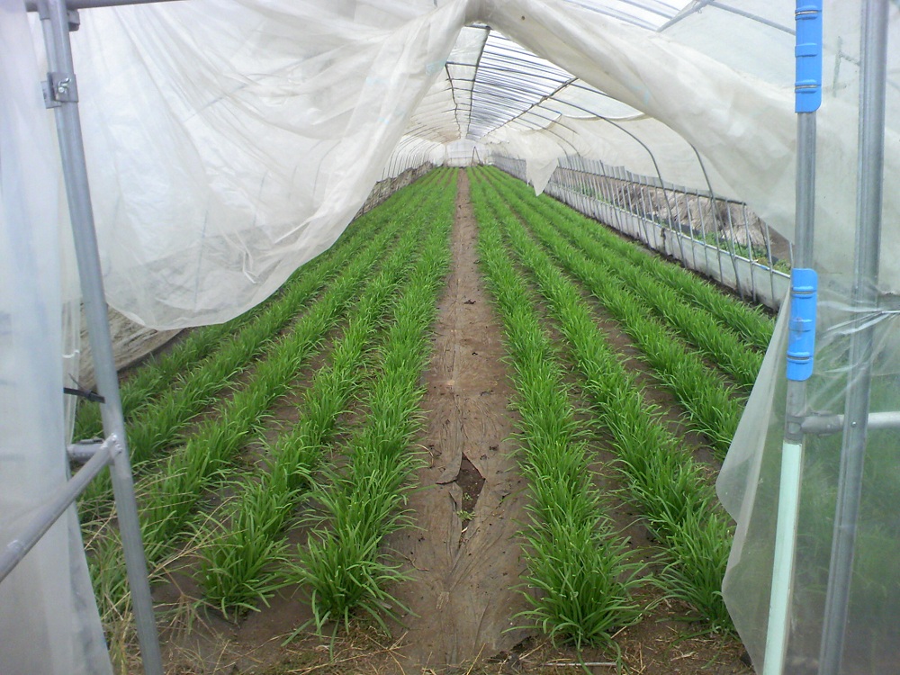 今日は、ニラ畑の防寒のためにビニールのカーテンをかけるのと
